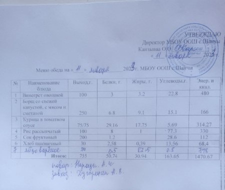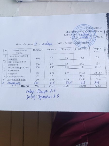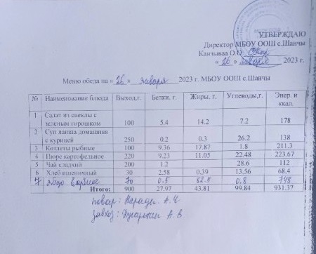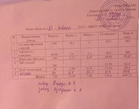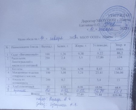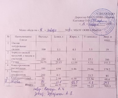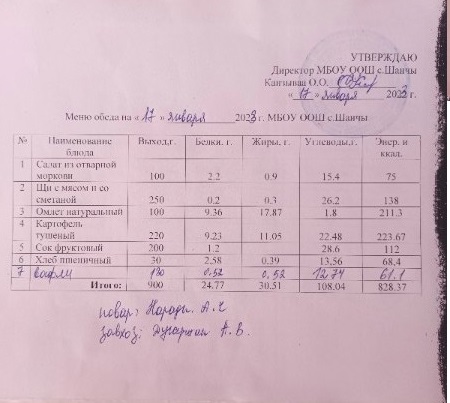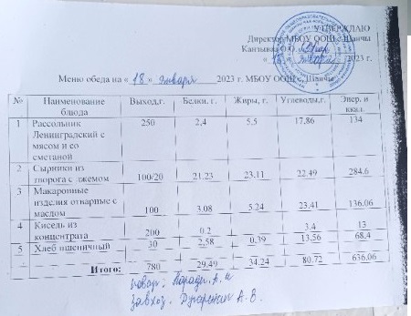 Меню (январь)