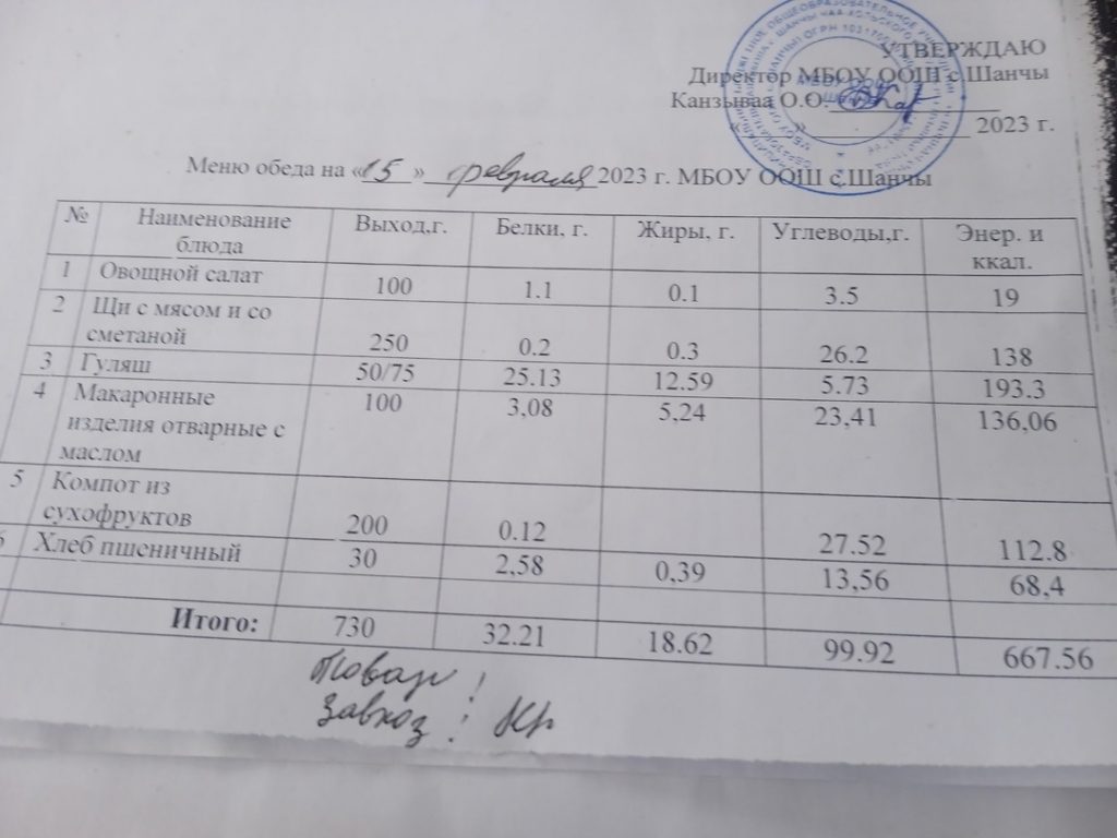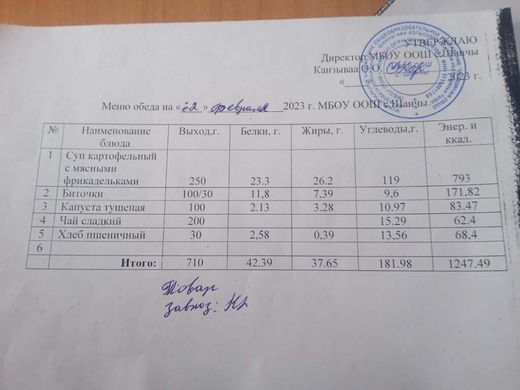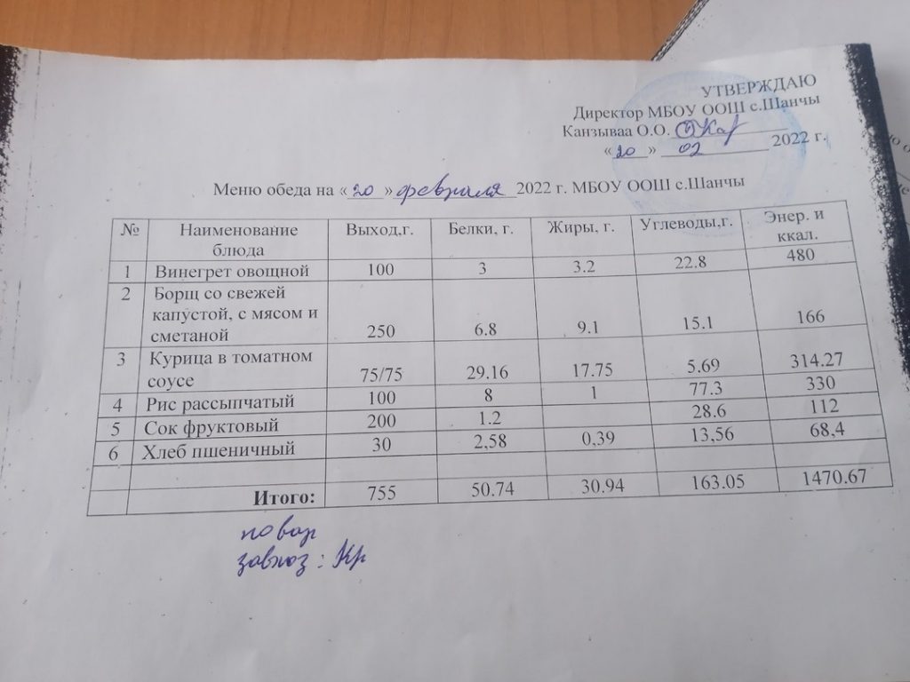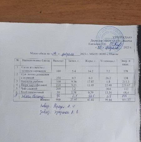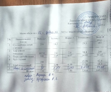 Меню (февраль)
