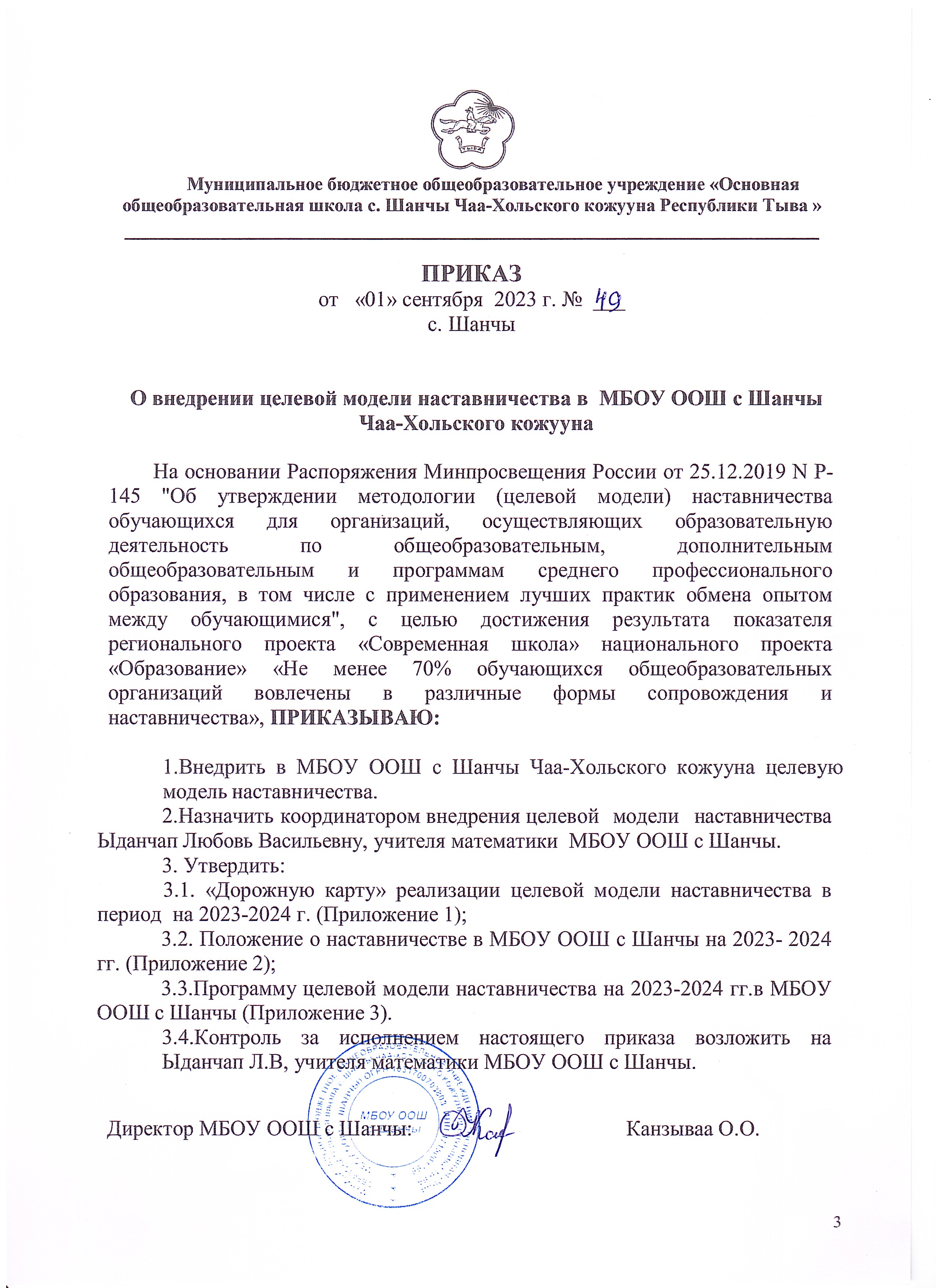 Приказ МинПрос РФ от 25.12.2019г. № Р-145. «Об утверждении методологии (целевой модели) наставничества обучающихся для организаций, осуществляющих образовательную деятельность по общеобразовательным, дополнительным общеобразовательным и программам СПО, в том числе с применением лучших практик обмена опытом между обучающимися»Скачать